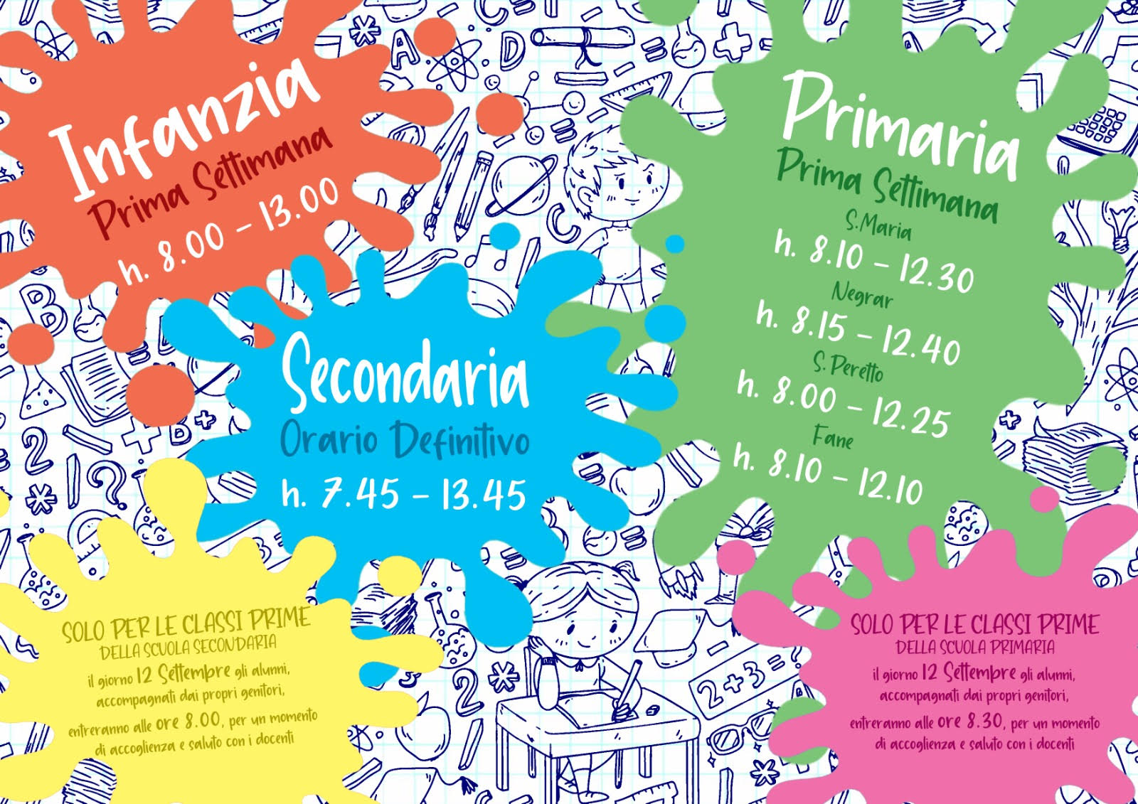 DettagliSi comunica ai genitori degli alunni nuovi iscritti presso la Scuola dell’Infanzia e ai genitori degli alunni delle classi Prime della Scuola Primaria che gli incontri informativi, in vista dell’avvio del nuovo anno scolastico, si svolgeranno in presenza nei rispettivi plessi, nel rispetto del Protocollo di sicurezza di Istituto, nei seguenti giorni. Si allega la…